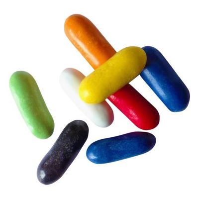 Socker, melass, VETEmjöl, glukossirap, modifierad majsstärkelse, ammoniumklorid, lakritsextrakt, färgande livsmedel av (safflor, citron, rädisa, spirulina,björnbär, äpple), färgämnen (E153), ytbehandlingsmedel (E904, E903, E901), emulgeringsmedel (E471), naturlig arom (anis), kokosolja, kokosfett
